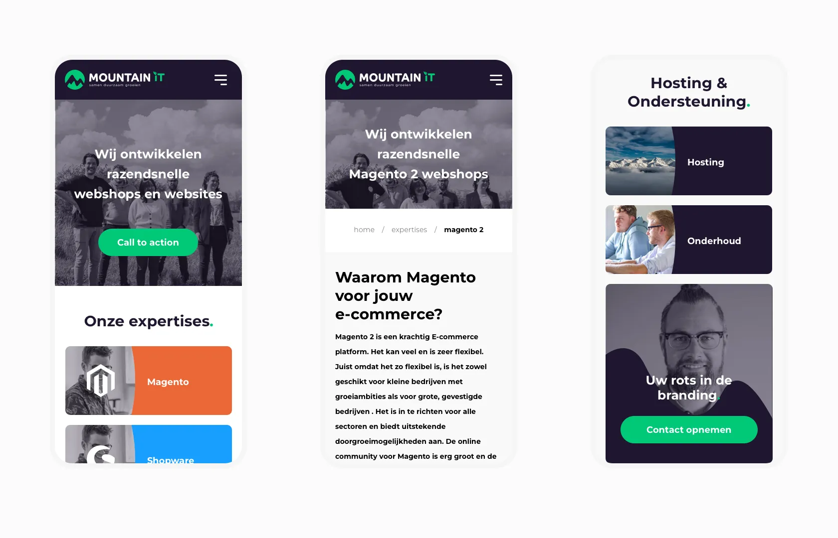 MountainIT is een webbureau die gespecialiseerd is in Magento 2, Shopware en Wordpress ontwikkeling. Dit doen ze voor voor klanten uit het hele land. Wij zijn een vaste partner van MountainIT voor het verzorgen van het UI / UX traject voor een groot deel van deze klanten. Omdat het tijd was geworden voor een eigen nieuwe website, heeft MountainIT ons gevraagd met het ontwerpen van hun eigen nieuwe website.
