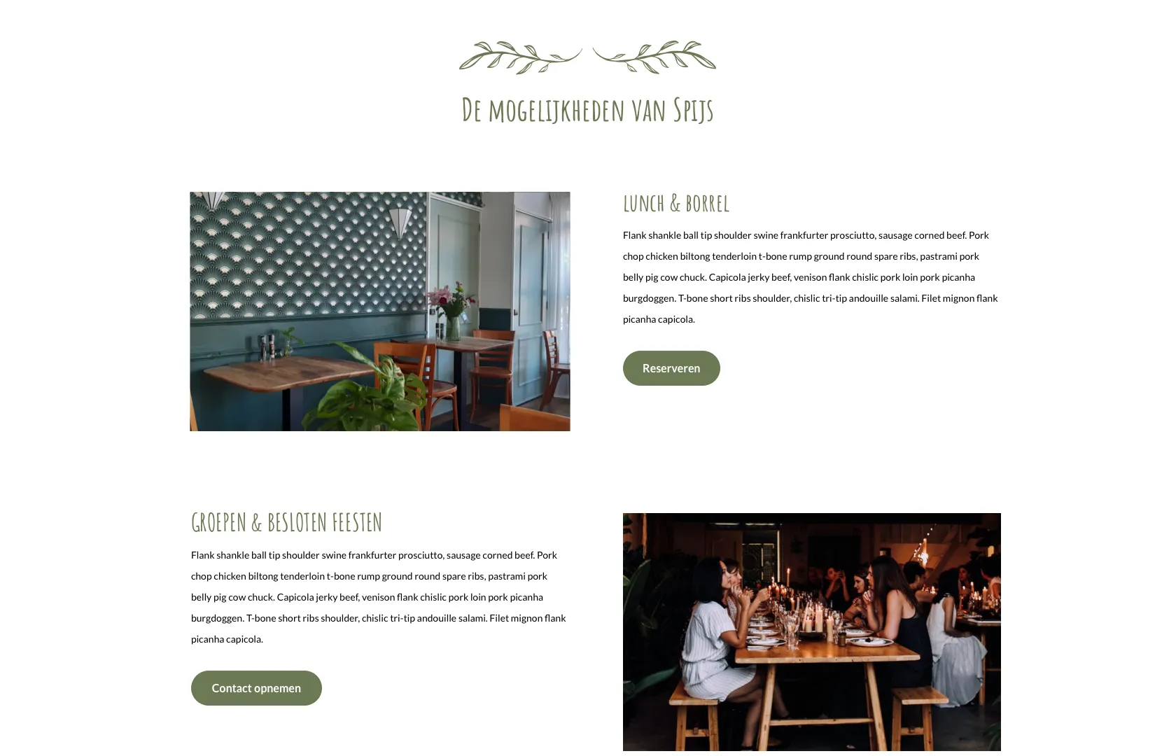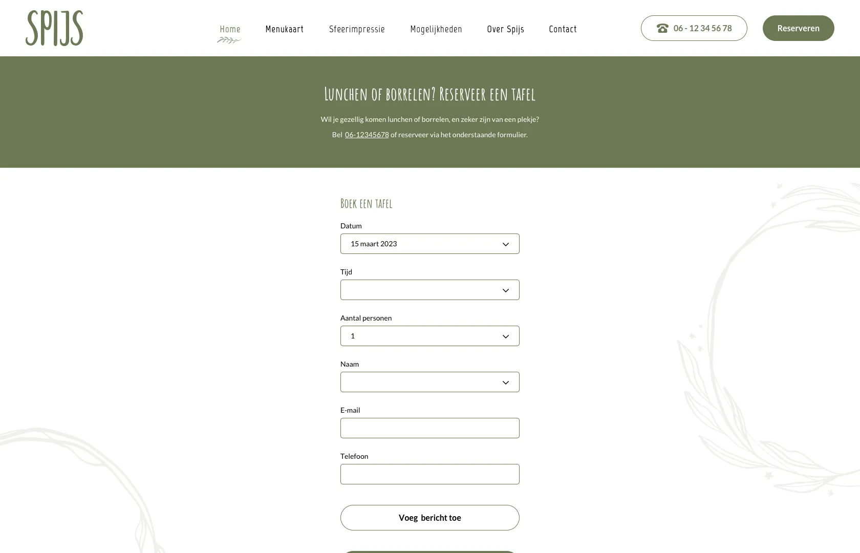 Bij het ontwerpen van de website voor Spijs hebben we nauw samengewerkt om hun visie tot leven te brengen. De kleuren die in de zaak worden gebruikt, zoals olijfgroen en wit, vormen de basis van de huisstijl. Deze kleuren zijn zorgvuldig doorgevoerd op de website om een samenhangende uitstraling te waarborgen. Het gebruik van het lettertype Amatic SC draagt bij aan een moderne en toegankelijke uitstraling.